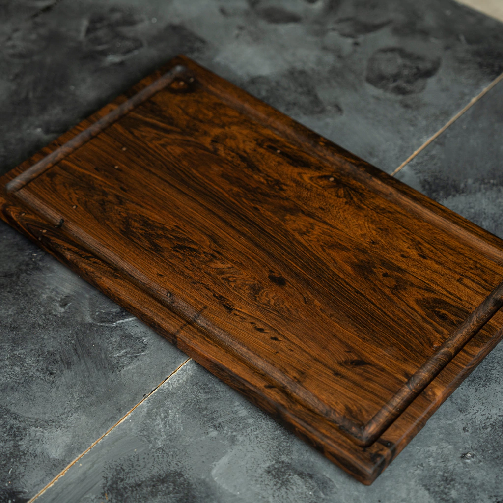 Transforme seu churrasco com nossa tábua feita de uma única peça maciça de guajuvira. Mede 45x27 cm com 2 polegadas de espessura — ideal para qualquer superfície.