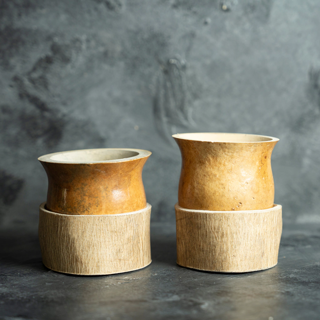 Descubrí la belleza y funcionalidad de nuestra calabaza pulida con base de cuero crudo, disponible en los modelos Chiripá o Monte. Cada pieza presenta un delicado detalle en cuerno de 2mm, aportando un toque exclusivo a tu experiencia de mate.